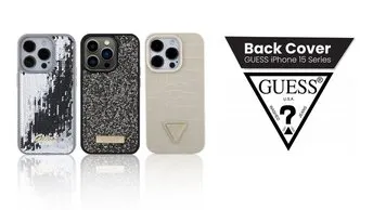 Guess HC Liquid Glitter Case with Triangle Guess Logo - Transparent - iPhone 15 Pro